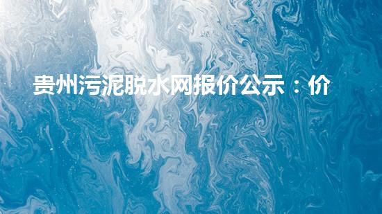 贵州污泥脱水网报价公示:价格透明,品质有保障!