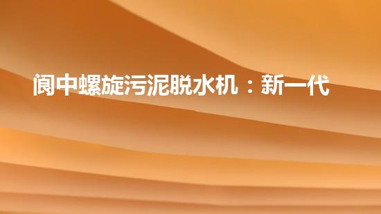 阆中螺旋污泥脱水机:新一代高效脱水解决方案