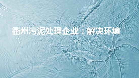 衢州污泥处理企业:解决环境难题,实现可持续发展
