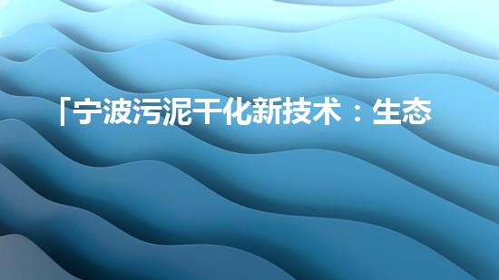 「宁波污泥干化新技术:生态环保,市场前景广阔!」