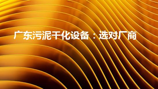 广东污泥干化设备:选对厂商,从根源上解决污泥问题