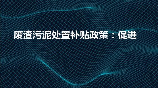 废渣污泥处置补贴政策旨在促进污泥减量化、资源化利用和环境保护,为生态文明建设提供必要的政策支持。