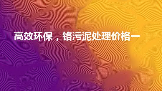 摘要:本文介绍高效环保,铬污泥处理价格一网打尽!首先引出了读者的兴趣,接下来提供了相关背景信息。