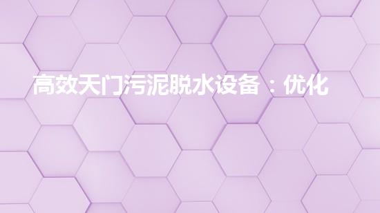 摘要:随着工业和城市化的快速发展,环保行业成为了重要的领域之一。在污水处理过程中,污泥的处理和脱水是一个微不足道却至关重要的环节。本文将介绍一种高效天门污泥脱水设备,该设备通过优化处理效率,实现了对污泥的快速处理和脱水,从而进一步推动了环保行业的发展。