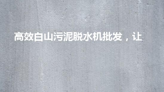 摘要:高效白山污泥脱水机是一种绿色环保的设备,它能够帮助生产商们快速处理污泥,提高生产效率。本文将从四个方面探讨高效白山污泥脱水机批发的重要性,以及它如何帮助生产更加顺畅。