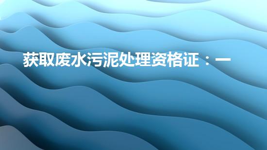 要获得废水污泥处理资格证,需要按照以下几个步骤: