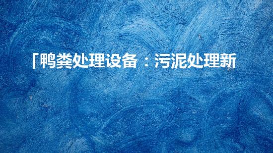 摘要:本文主题为「鸭粪处理设备:污泥处理新革命」,展示了一种新的污泥处理设备。通过「鸭粪处理设备」这一引人入胜的标题,吸引读者的兴趣,本文提供了相关背景信息。随着城市化进程的加速,污泥处理是一项至关重要的工作。然而,传统的处理方法无法很好地处理大量的污泥,而且环境和经济效益有限。鸭粪处理设备则是一种创新方法,为城市环境提供了新的解决方案。