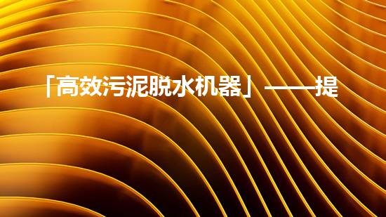 摘要:本文旨在介绍一种新型的「高效污泥脱水机器」,该机器采用先进的设计模型,可以有效地提高脱水效率。本文首先通过一个简要的背景介绍,引出读者的兴趣,并承接介绍新型脱水机器的主题。