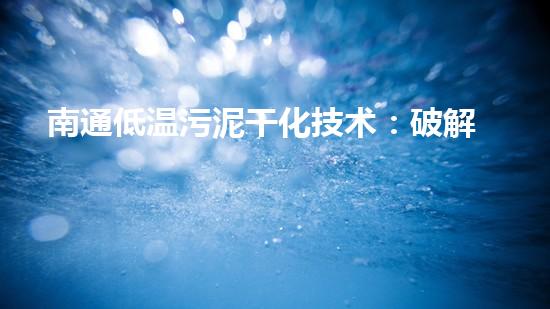 展望低温污泥化技术在南通的实施前景广阔,它将在多个维度支撑都市的绿色高质量进步: