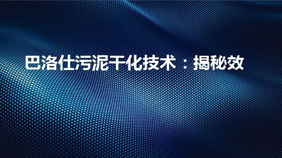 巴洛仕污泥干化技术:揭秘效率高的污泥处置新策划