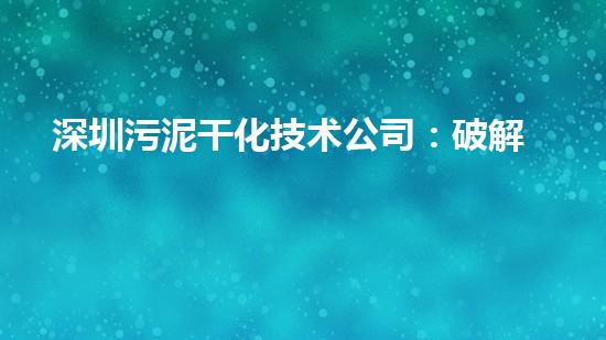 深圳污泥干化技术公司:破解都市污泥难题的创新先锋