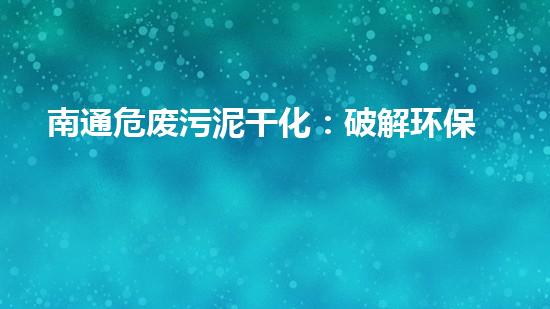 南通危废污泥干化:破解环保难题探寻资源化新路径