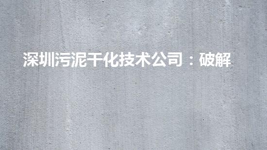 深圳污泥干化技术公司:破解都市污泥难题的创新先锋