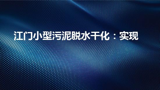 江门小型污泥脱水干化:实现污泥资源化利用的有效路径