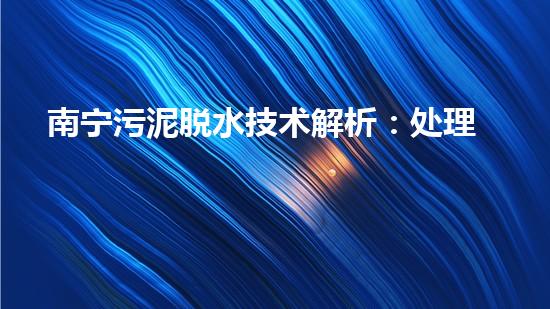 南宁污泥脱水技术解析:处理过程、设备、成本及应用优势