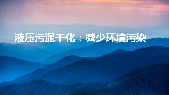 液压污泥干化:减少环境污染的革命性技术