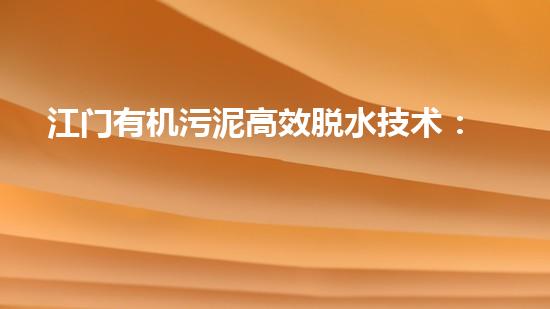 江门有机污泥高效脱水技术:新篇章