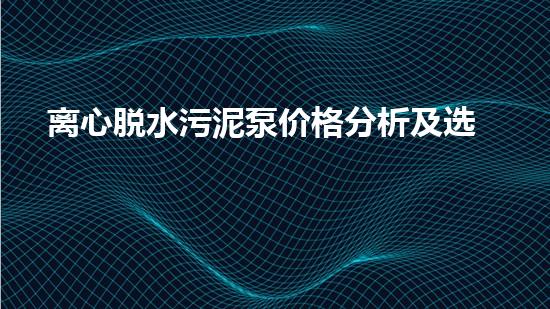 离心脱水污泥泵价格分析及选购指南
