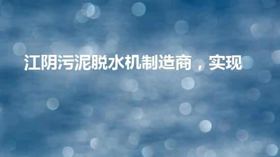 江阴污泥脱水机制造商,实现高效环保污泥处理