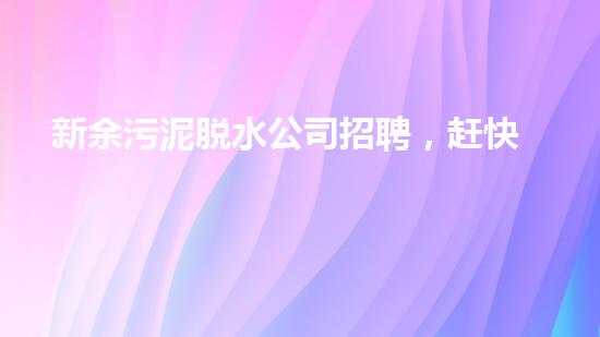 新余污泥脱水公司招聘,赶快加入我们的团队!
