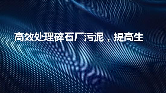 随着建筑材料生产的不断发展,碎石厂生产的污泥也不断增加,污泥含有大量有机质和微量元素,但同时也会产生环境污染和卫生问题。然而,传统处理方法如填埋、焚烧等会产生新的污染问题或造成资源浪费。因此,高效处理碎石厂污泥已经迫在眉睫。