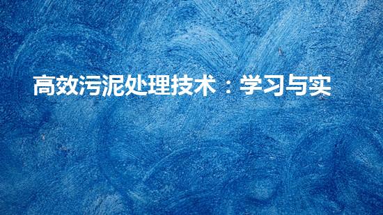 随着人类经济和社会的不断发展,各种产业的快速增长也带来了环境污染等问题。优秀的污泥处理技术应运而生,高效污泥处理技术:学习与实践成为污染治理的重要手段之一。本文将从多个方面对该技术做深入阐述,以期读者了解和掌握高效污泥处理技术。