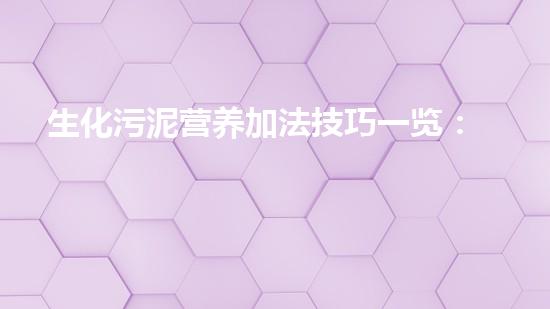 摘要:生化污泥营养加法技巧一览:简单易行,又经济实用,是一种有效利用污泥资源的方法。本文从营养加法原理、营养加法类型、加法方法、加法时机、加法注意事项等方面进行阐述,并推荐了一种新型污泥处理技术。