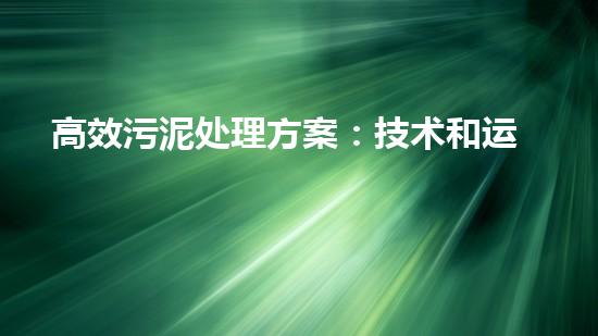 摘要:污泥处理一直是环境保护行业中一个热点问题。本文将结合技术和运营的可持续结合,详细探讨高效污泥处理方案。