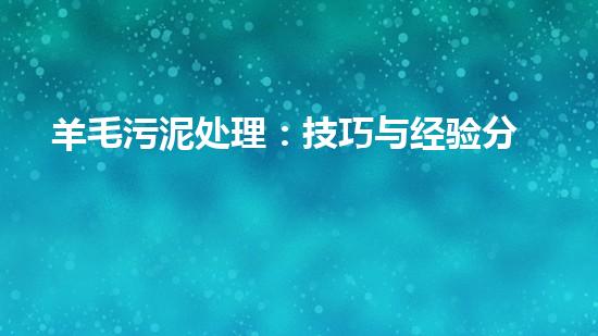 本文对羊毛污泥处理的技巧与经验分享进行了详细的阐述。通过物理、化学和生物方法的综合应用,可以达到高效降解羊毛污泥的目的。羊毛污泥的处理对环保事业具有重要意义,也为资源循环利用提供了新的思路。