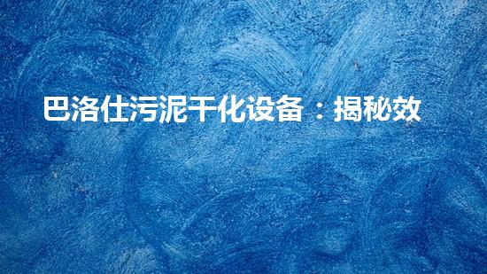 巴洛仕污泥干化设备:揭秘效率高的污泥处置新策划