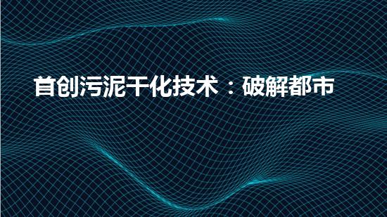 首创污泥干化技术:破解都市污泥处置的绿色钥匙