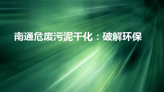南通危废污泥干化:破解环保难题探寻资源化新路径