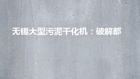 无锡大型污泥干化机:破解都市污泥的“脱水”密钥