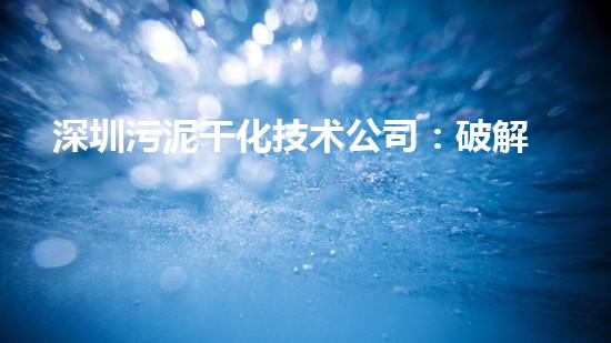 深圳污泥干化技术公司:破解都市污泥难题的创新先锋