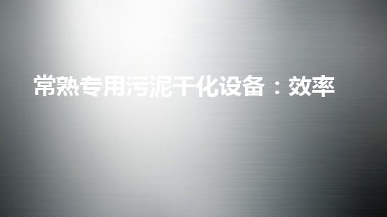 常熟专用污泥干化设备:效率高化解处置难题的创新策划