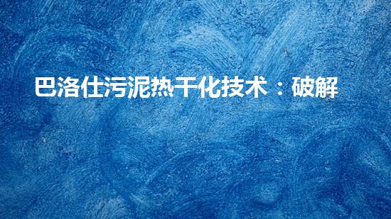 巴洛仕污泥热干化技术:破解污泥处置难题的创新策划