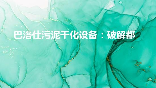 巴洛仕污泥干化设备:江苏环保升级的智能化解策划