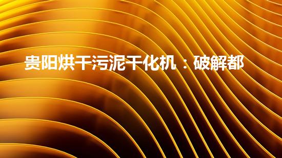贵阳烘干污泥干化机:破解都市污泥难题的绿色利器