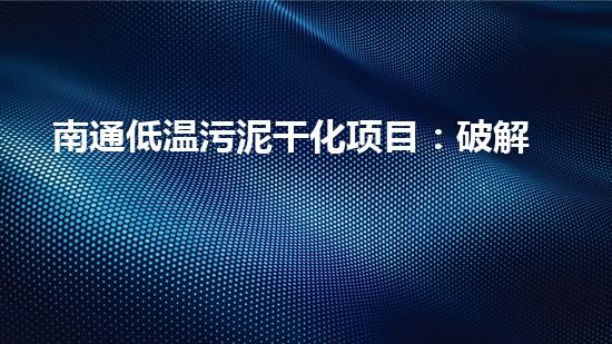 南通低温污泥干化项目:破解污泥处置的绿色新策划