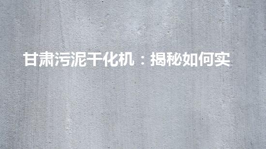 甘肃污泥干化机:揭秘如何实现效率高与长期省钱的双赢策略