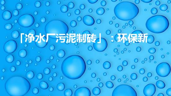 「净水厂污泥制砖」:环保新利器,废物变宝贝!