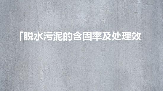 「脱水污泥的含固率及处理效果分析」
