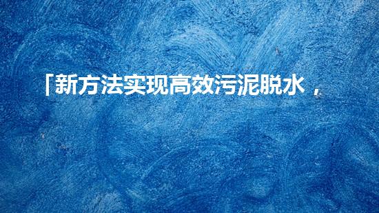 「新方法实现高效污泥脱水,提升脱水率达到34%」
