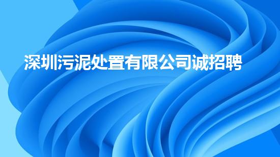 深圳污泥处置有限公司诚招聘,共筑环保事业!