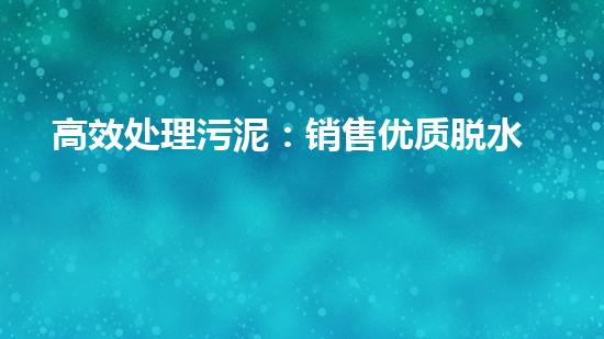 高效处理污泥:销售优质脱水机,赢得市场优势