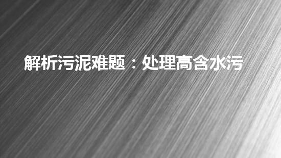 解析污泥难题:处理高含水污泥引发的难题及应对方案